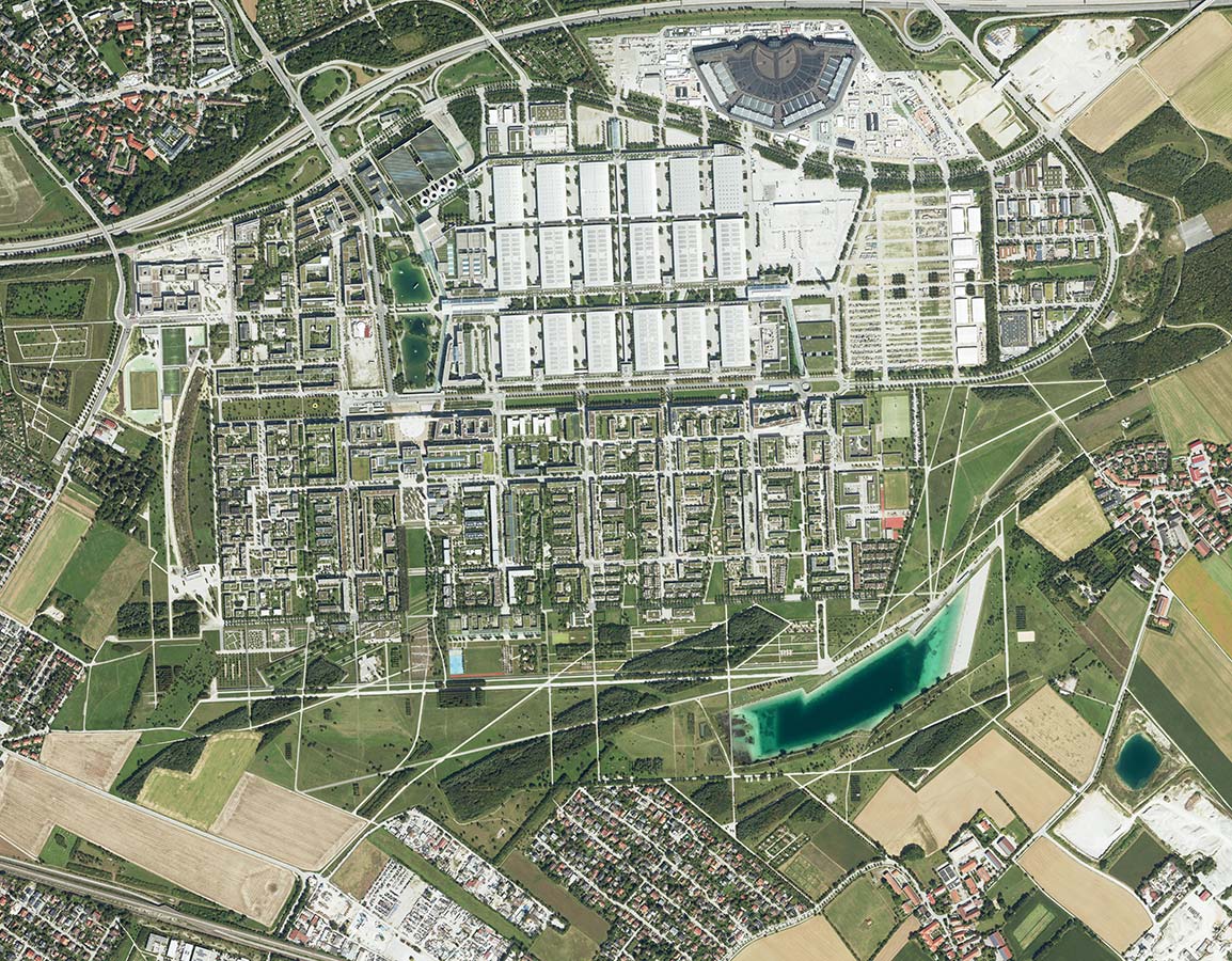 Die Luftbildreihe dokumentiert die Entwicklung des Flughafens München-Riem. Aus dem ursprünglich militärisch genutzten Flugplatz wurde ein ziviler Flughafen und schließlich die Messestadt Riem. Die Luftbilder des Münchner Flughafens Franz Josef Strauß oder des Albrecht Dürer Airports Nürnberg eröffnen weitere Einblicke in die Entwicklung der internationalen Drehkreuze. Aus der Perspektive von oben werden vor allem die vielfältigen Strukturen der Flughäfen sichtbar.