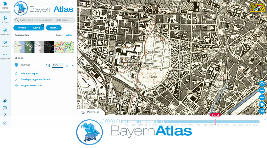 Ob für schulische Projekte, wissenschaftliche Arbeiten oder die persönliche Spurensuche: Der BayernAtlas macht historische Geodaten einfach zugänglich. Die intuitive Benutzeroberfläche und die Funktionen Zeitreise und Vergleichen ermöglichen es, Vergangenheit und Gegenwart miteinander zu verknüpfen.